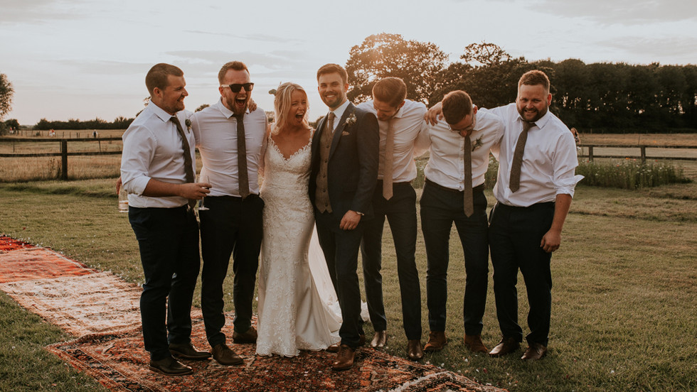 Ellie and Carl were childhood sweethearts and an absolute dream to work with! Their wedding was set at the incredible Godwick Hall in Norfolk on a beautiful August day, they had an epic outdoor ceremony, overlooking the ruins with a persian rug aisle from The Little Lending Co. and stunning flower backdrop by Rambling Rose Florist. Their entire wedding party was full of emotion and big smiles all day long and we got some epic groups shots with the bridesmaids and groomsmen having a laugh on the lawns! Awesome day for an awesome couple!